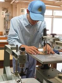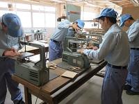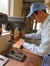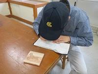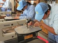 学校設定科目「ウッドクラフト」で2年生が茶托を作っています(授業の様子)。