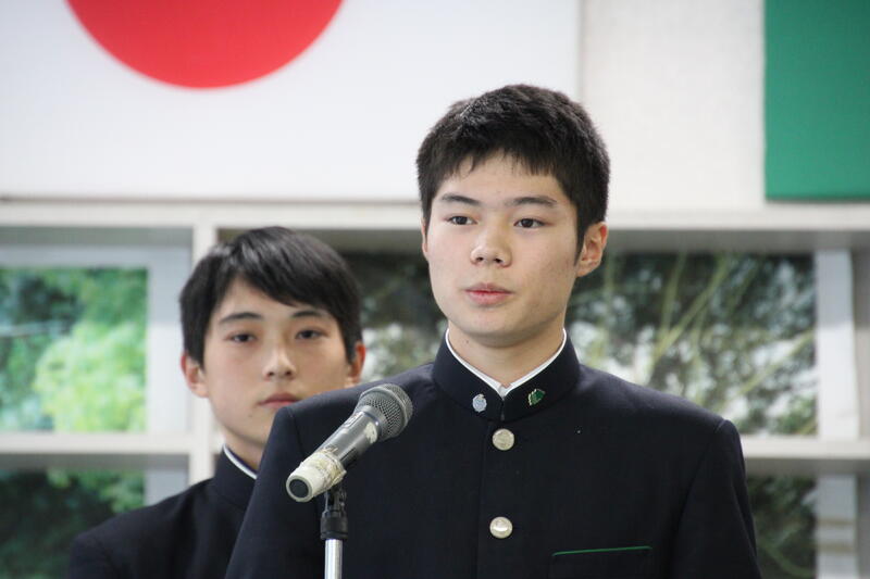 記念式典では、全校生徒の倍以上にあたる80名以上の来賓の方々にご参列いただき、生徒たちも緊張した面持ちで参加していました