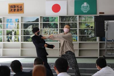 ①練習では、先輩から技術面での助言や生徒たちからの質問に対するアドバイスをいただきました。