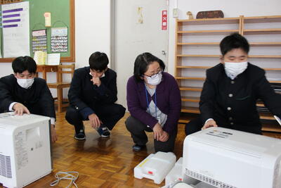 オーソドックスですが、身を隠して揺れが収まったら全員避難、それから熊本県の地震についてDVDを通して学びました