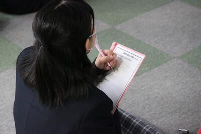 当事者の気持ちになるといたたまれない気持ちになったようで、真剣に視聴し、感想を熱心に記入していました
