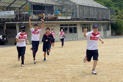 小さな泉分校のグラウンドでは、ギリギリまで大きくとって1周150mです注意
