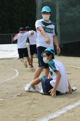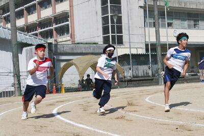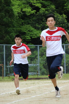 100m競走は一般的な競技ですが、泉分校のグラウンドは狭いので、コーナーがとにかくきつい重要