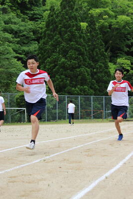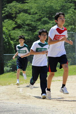 以前、雨で実施出来なかった新体力テストの長距離走の測定を、1・2年生合同で行いました急ぎ