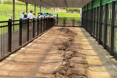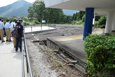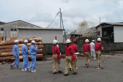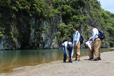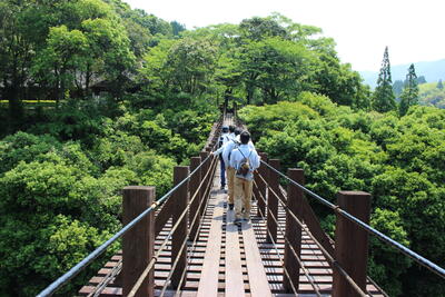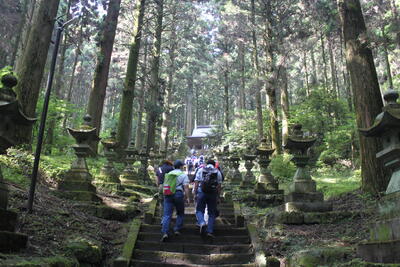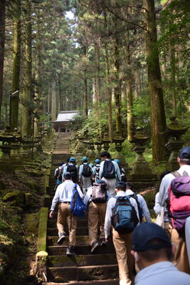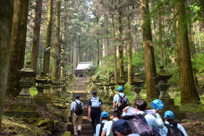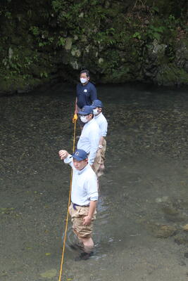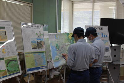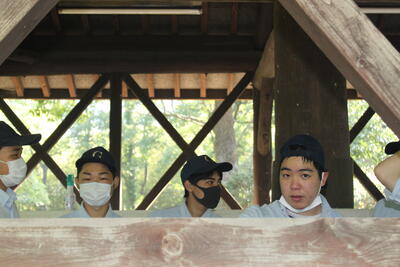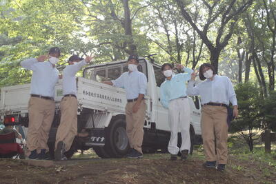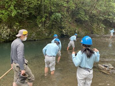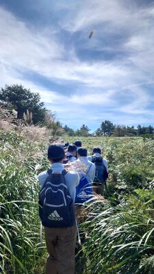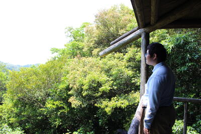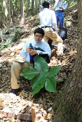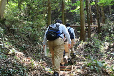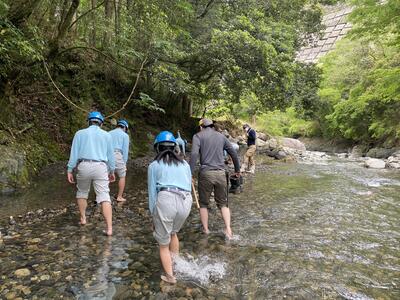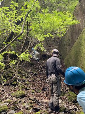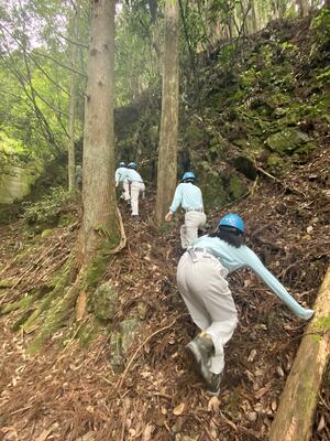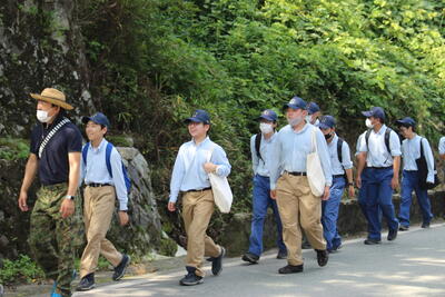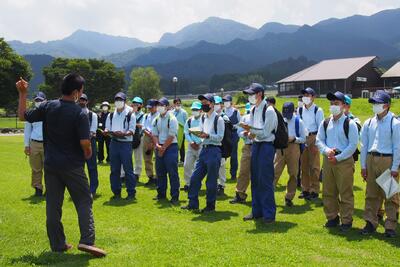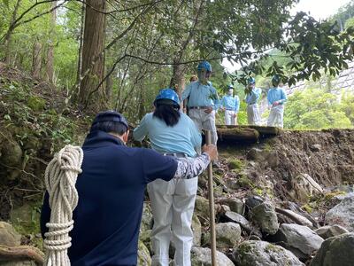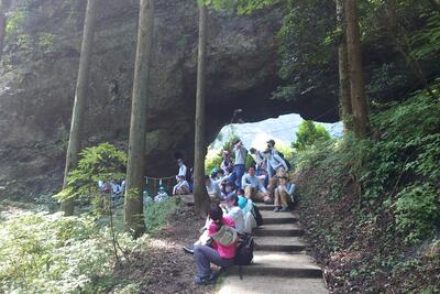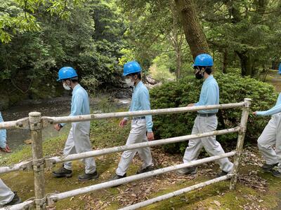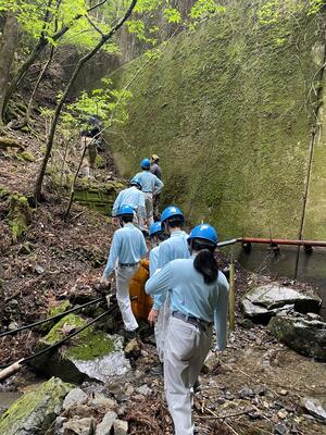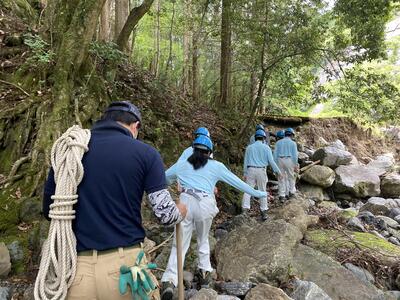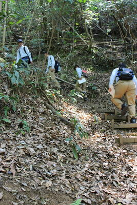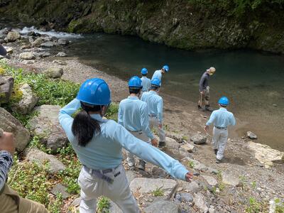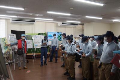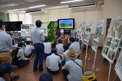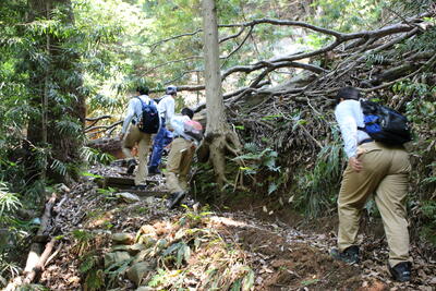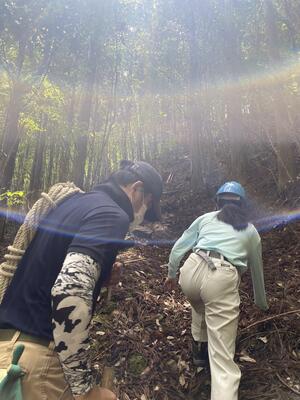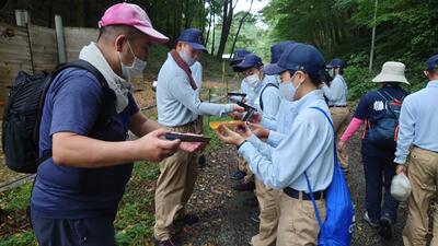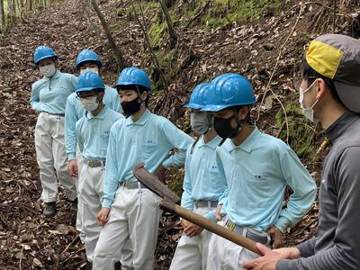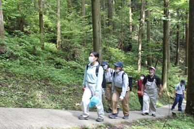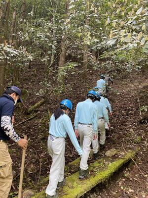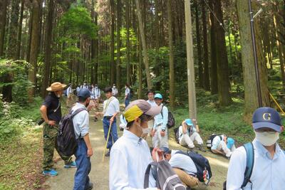 途中、職員から山の管理や生息する動物の様子の説明を聞きながら、自然の力を感じて、目的地に到着しました晴れ