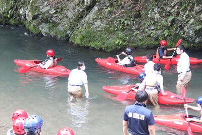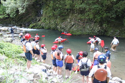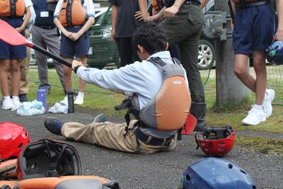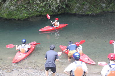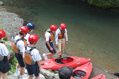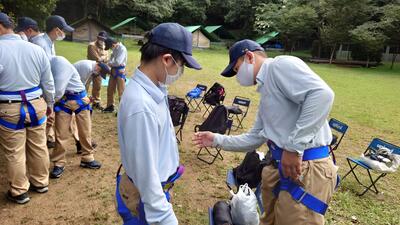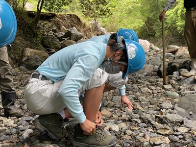 まず、出発前にヘルメットの装着の仕方、トレッキングシューズの履き方をきちんと学び、出発しました急ぎ