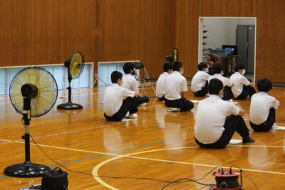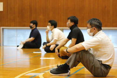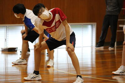 測定の前には、全員で体育館に集合して説明を受け、準備運動をしました急ぎ