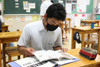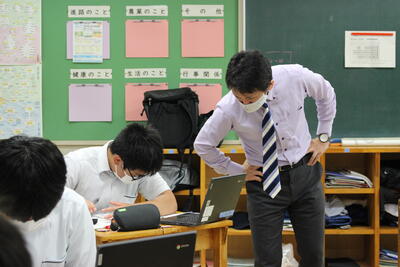 さて、今日は各ホームルームでの「座学」の授業を覗いてみました虫眼鏡
