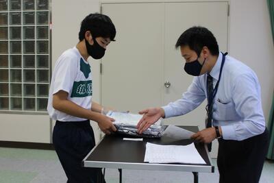 先日、1年生へ夏の制服の販売が行われましたピース