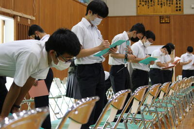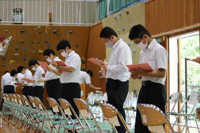 団長らの決意表明や、開会宣言、選手宣誓、生徒会長の挨拶などから、3年ぶりの終日の体育祭にかける思いがよく伝わってきましたね花丸
