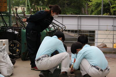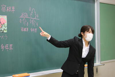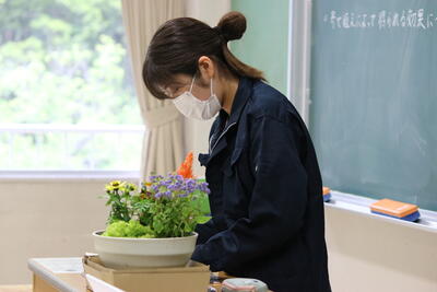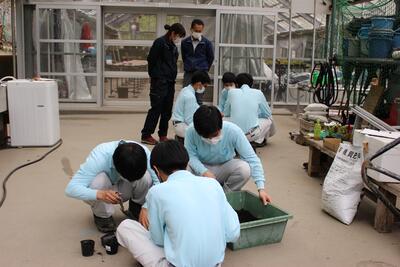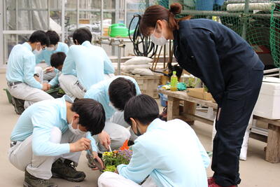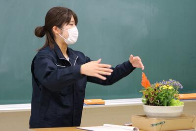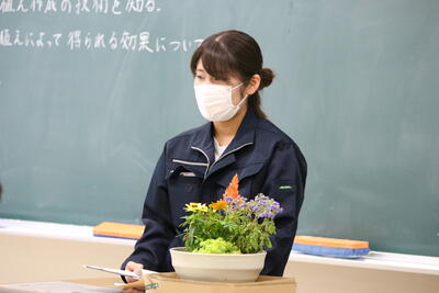 この日は1年生で「寄せ植え」の実習をするようで、まずホームルームで知識や目標の確認をしました了解