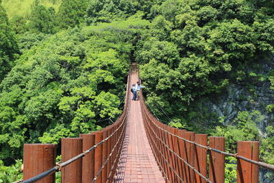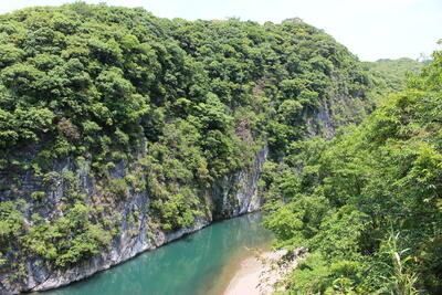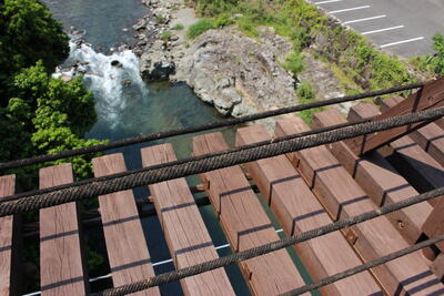 ピース 山に入る。川を渡る。手を取り合う。
