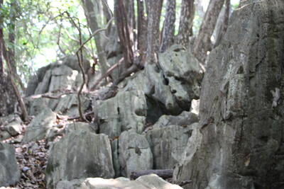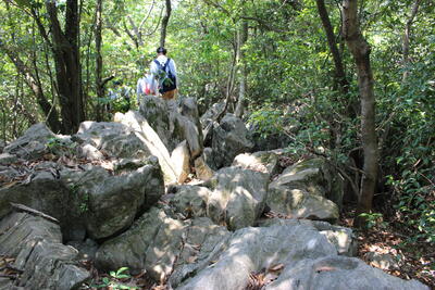 大きな岩、道の途中にある木、道幅の狭いところ、治山ダム、急な斜面、滑りやすい岩と、次から次に関門がやってきます重要
