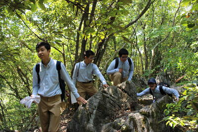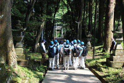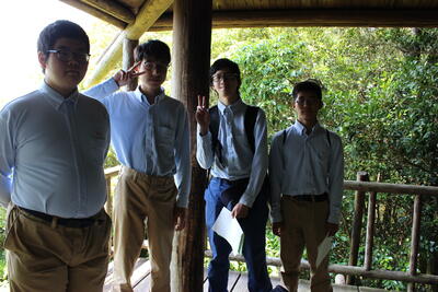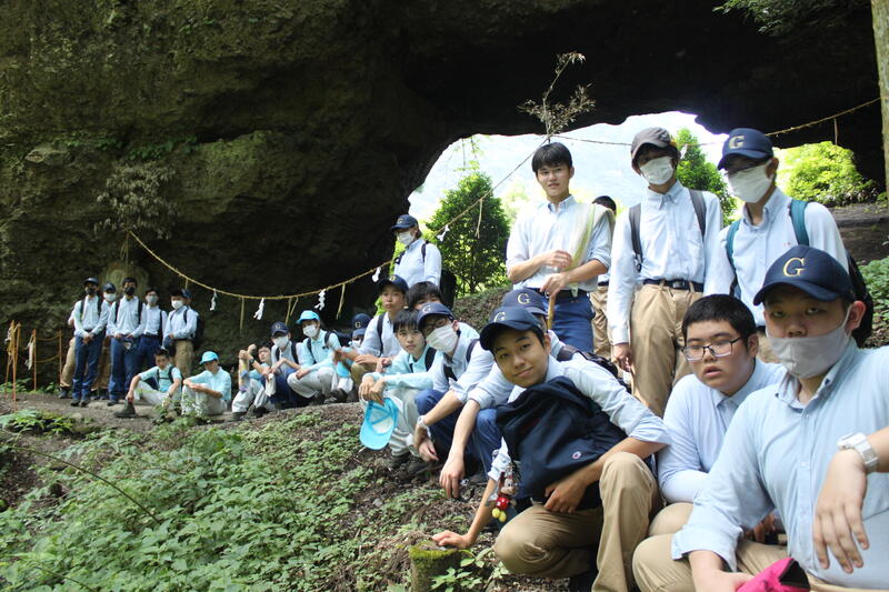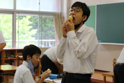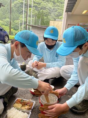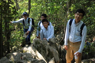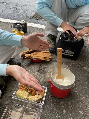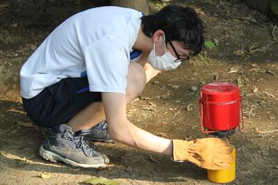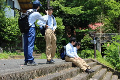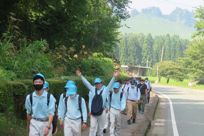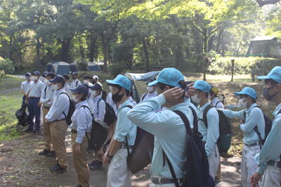 1年生の総合実習の授業で、学校の裏山へのトレッキングを行いました昼