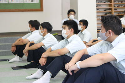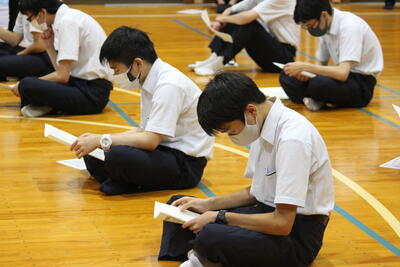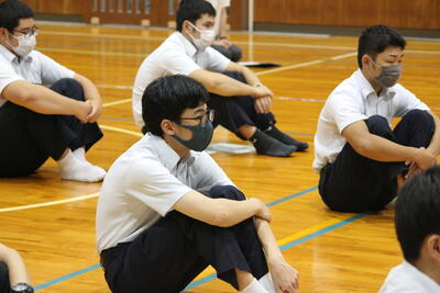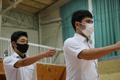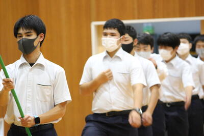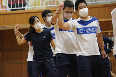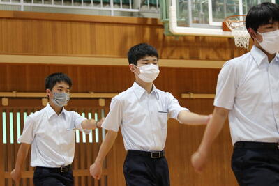 1年生にとっては初めて聴くメロディと振り付けですが、輪の中心で指導した生徒会役員ら先輩たちのアドバイスのおかげで、随分と上手になっていきました花丸