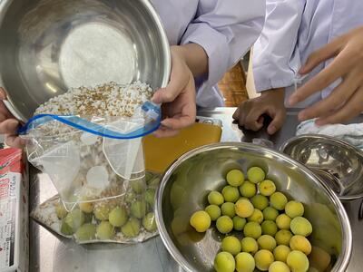梅と糖分を同量ずつジップロックに入れただけなのに、こんなにたくさんの水分が出てきましたピース