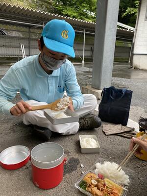 例年の初日は、グラウンドにテントを設営したり道具を設置したりするのですが、雨で出来ません雨