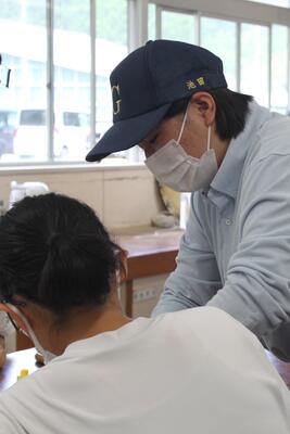全体を見渡して、適宜指導をされ、実習は順調に進行していきました音楽