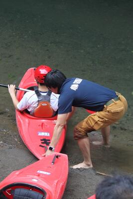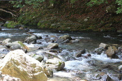 最初の関門は、まだ水温が低い川を渡ることです汗・焦る