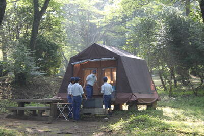 昨日は、雨で準備が出来ませんでしたが、今日は雨も上がり、ようやくテントの組立てが出来ました動物