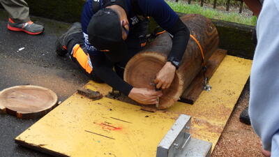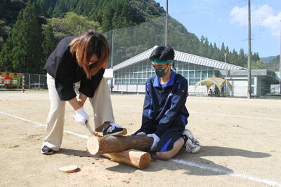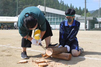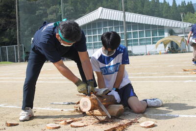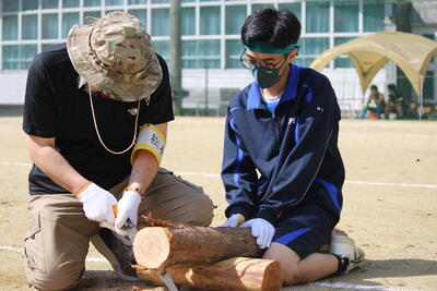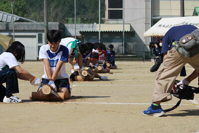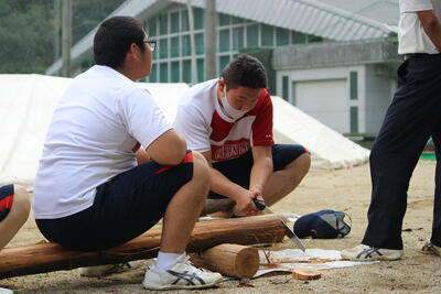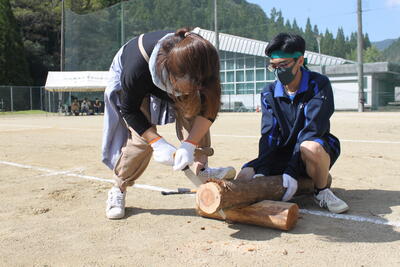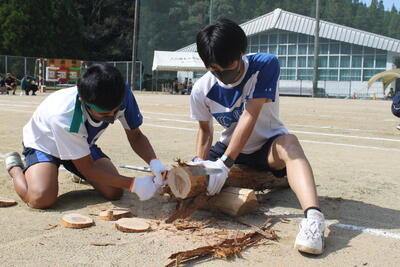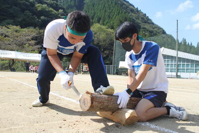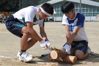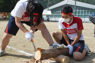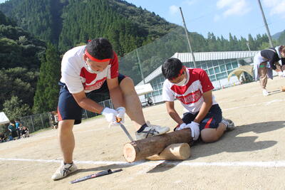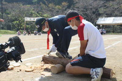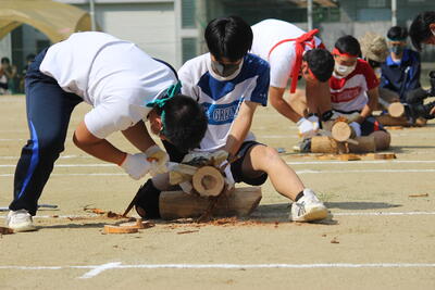 続いて、泉分校体育祭の名物の1つ「丸太切りリレー」です✄