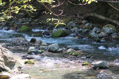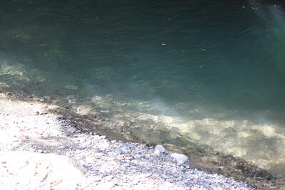 入ってみると水が冷たいこと!砂利の上を裸足で歩きながら、痛いような、くすぐったいような感覚で向こう岸に到着しましたひらめき
