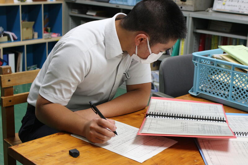 休憩時間には、職員からの助言も受けていましたハート
