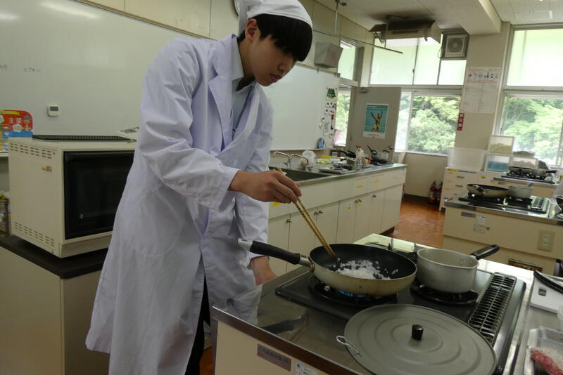 のぞいてみると2年生のライフコースが調理実習を行っていました家庭科・調理