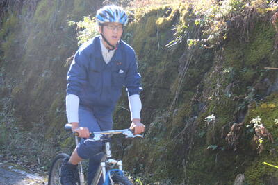 一晩明けて11月20日(土)。お上の塔の大杉に向かってマウンテンバイクで出発しました