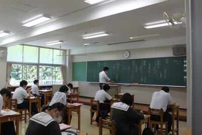1年生の教室を覗いてみると、科学と人間生活の授業が行われていました
