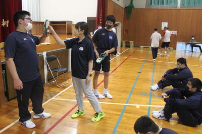 本日は高校総体の開会式が行われ、行進に参加した生徒以外は学校で美化作業に励んだ後、バドミントンをして過ごしました。