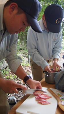 昼食は野菜炒めを各班で作りました。お腹がすいて早く作って食べる班や、様々な味を作って食べ比べをする班など、調理1つでも様々な個性が見られ、充実した活動になったかと思います