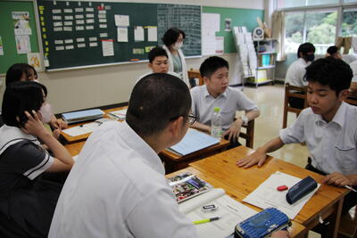 時々辞書がわりにタブレットも用いて調べた内容をグループメンバーみんなで協力してマシュー先生に英語で伝えていました