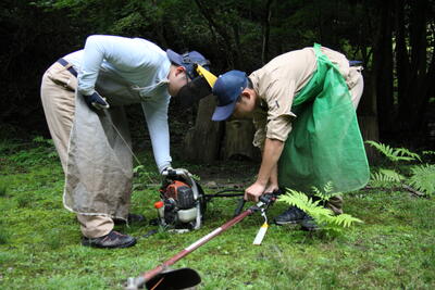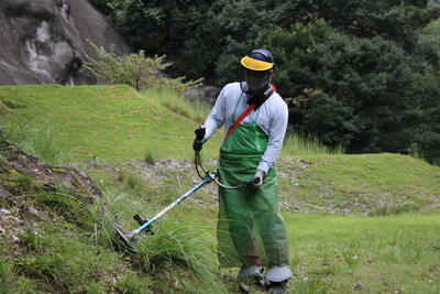 自分たちで黙々と準備を行い、手際よく草刈りを行う3年生たち