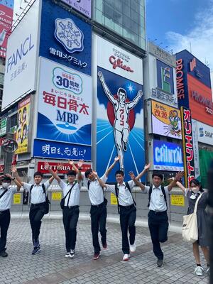 みんなでグリコポーズで写真を撮った後、大都市特有の雰囲気や大阪ならではのお店の雰囲気を感じながら、なんばグランド花月に向かいました。