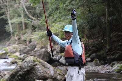 やま部では渓流釣りを行い、アブラメなど8,9匹釣り上げることができました