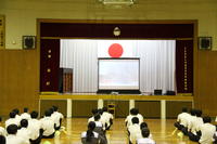 その後防災主任の先生が、内水氾濫や5段階の警戒レベル、土砂災害マップなどを大変分かりやすく説明しました