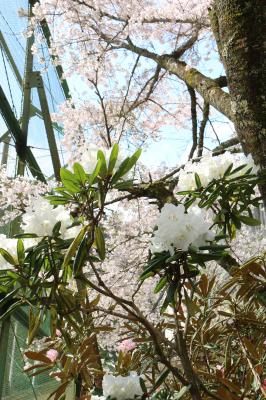 泉分校では、サクラそしてシャクナゲがダブルで満開です