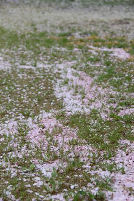 遠目に見ると満開ですが、足下を見ると随分と散っていました