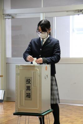 今後、選挙権を得る1・2年生に対し、八代市選挙管理委員会の方々をお招きして講演と模擬投票を行っていただきました。