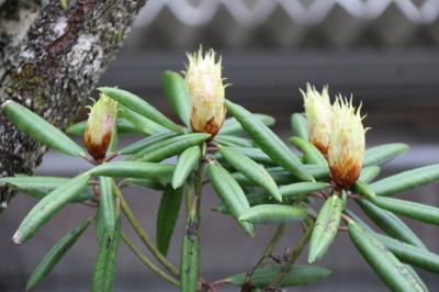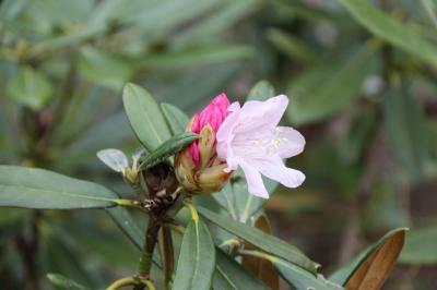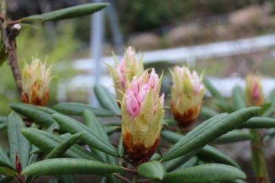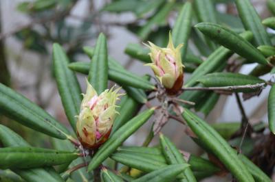 現在のシャクナゲは、つぼみ・咲きそうなもの・すっかり咲いたもの、と様々です。