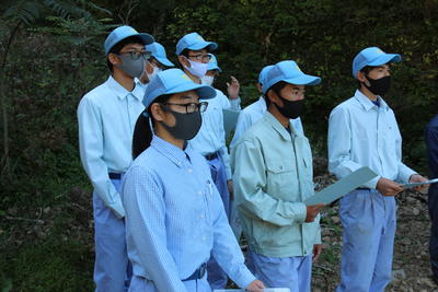 10月6日(火)、泉分校で取り組んでいる鳥獣被害対策活動の一環で、八代工業高校の機械科3年生と合同で植林後の鳥獣被害の現地見学会を行いました