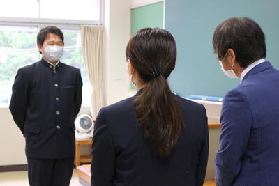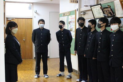 転退任式後の終礼に、転勤する職員が教室にやってきました