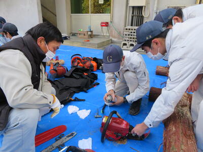 12月4日(土)八代地区林業研究グループと生徒との交流会が行ないました。今回はチェーンソーの目立て、ジビエ料理に分かれて研修をおこないました。ジビエ料理については、しゃくなげ会のメンバーとシカ肉を使った