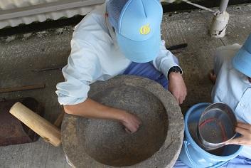 ユズヤマメの飼料を作りました。3月の下旬からユズを混ぜた飼料を給餌しています。時間短縮で今回は石臼と木槌で砕くことで、より速く砕くことができました。また、ユズ入り飼料を食べやすいように小さく丸めました。根気のいる内容で、何かの伝説に向かって頑張っているように見えました。