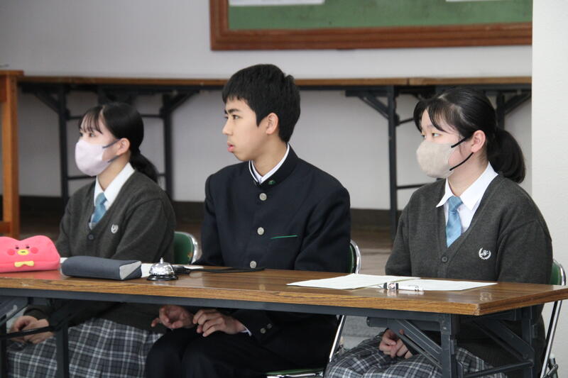 各学年の代表者が、全校生徒の前で発表を行いました。