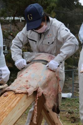 先日、熊日新聞の記事でも取り上げていただいた、皮剥ぎ(かわはぎ)実習について報告します