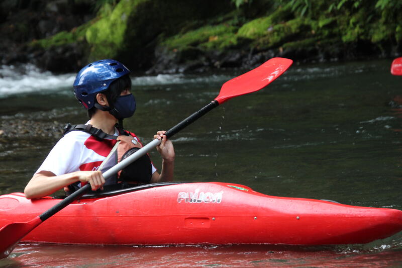 3年生の「森で学ぶ」ではカヌーに乗っていました