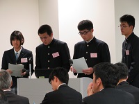 10月30日(火)パレアホール・会議室1にて、九州森林管理局主催の森林・林業の技術交流発表大会が開催され、高校生の部でスギ品種シャカインに関する研究について、分校3年生4人が発表しました。緊張しながらも、これまで調べたことを分かりやすく伝えることができました。