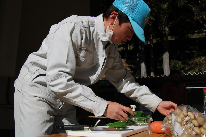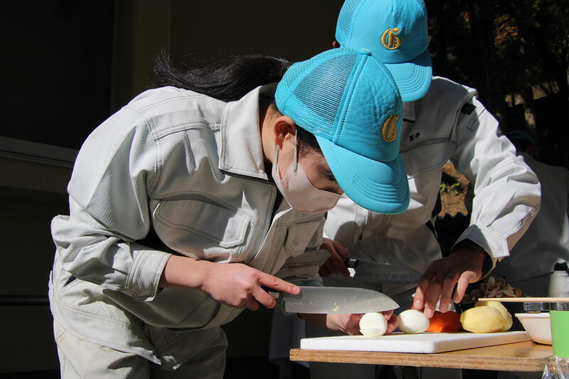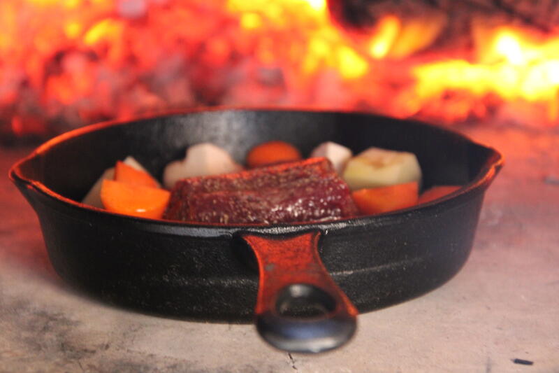 まずは野菜を切って、いただいた鹿肉をスキレットで焼いていきます